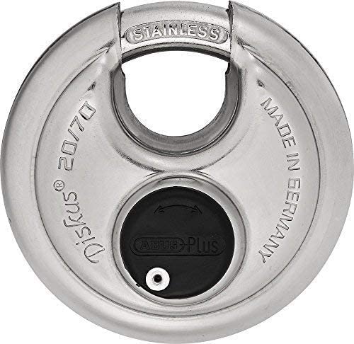 Stainless Steel Padlock: This stainless steel disc lock offers 360 degree all round protection, effectively combatting the most common ways of forcing it open Anti cut plate offers added security; Includes 2 keys